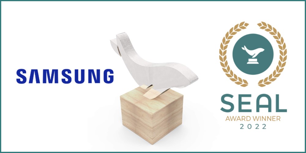 SEAL(Sustainability, Environmental Achievement & Leadership)Awards 是一個倡導環境永續的組織,透過企業永續發展獎以及環境新聞獎表揚卓越的領導力,並資助研究、推動內部的環保影響力計劃。SEAL Awards 每年在永續環保、社會和治理(ESG)專家小組的評鑑下,會對最具影響力的永續發展舉措,以及致力推動環保、足堪表率的績優企業,表達至高無上的敬意。三星此次風光抱回本屆「永續產品獎」,也表示被 SEAL 肯定三星帶來了激勵人心、專為特定目的而打造,並以更好的方式為世界帶來進步與變革的產品。