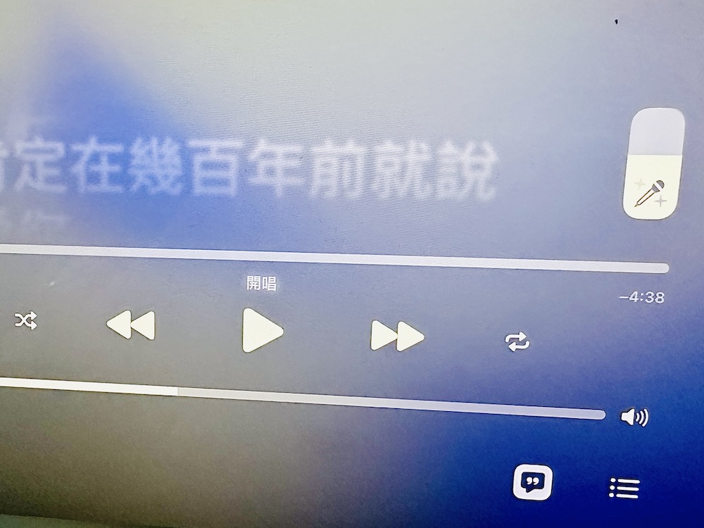 當找到想要唱的歌曲後,我們可以透過旁邊的「麥克風」圖示來調整背景演唱者的人聲大小聲,拉越高演唱者的聲音越大聲,反之如果只想要音樂然後自己要唱,那就把麥克風圖示往下拉到底。