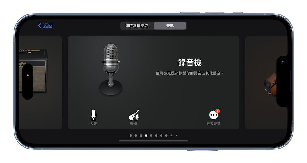 如果想要幫自己的歌聲錄下來,也能開啟 iPhone 或是 iPad 裡的 Garage Band 後選擇「錄音機」裡的人聲來幫忙錄音!