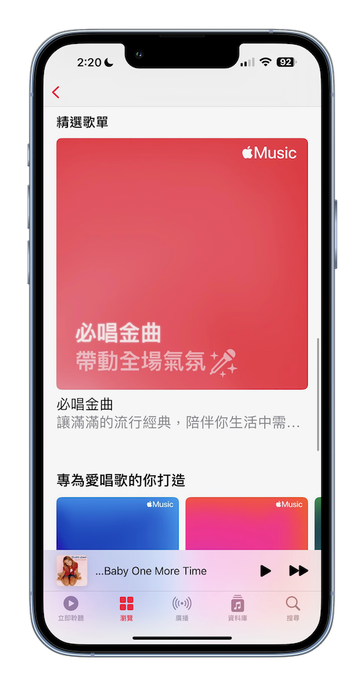 打開 Apple Music 後,我們有兩種方式可以選擇「開唱」