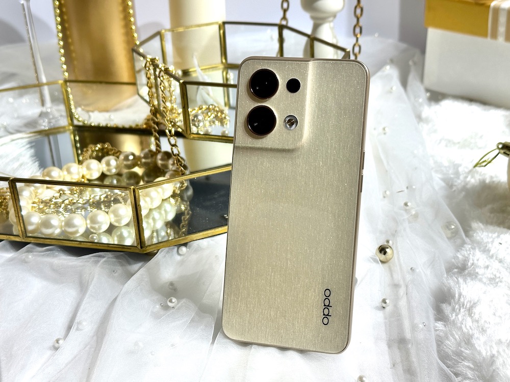 OPPO Reno8 金色採用輕奢緞面金髮絲紋質感設計,集成 OPPO 獨家熱鍛工藝,運用極致工藝打造鏡頭與機身背蓋零斷點的一體成型流線設計,柔和圓潤的外型增加手感舒適度,充滿未來感的設計概念令人嘆為觀止。Reno8 緞面金全新配色更是將時尚優雅精準拿捏,打造陽光灑落般的自然系光澤,絲緞般光滑細緻的微閃光芒,搭配髮絲紋背蓋設計的細膩小巧思。