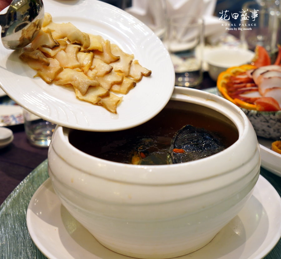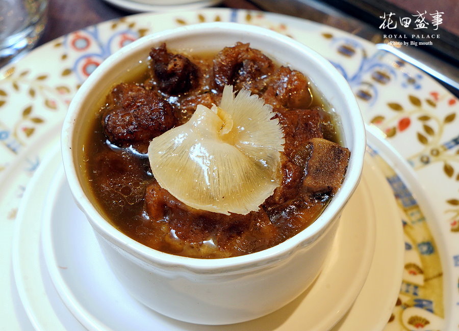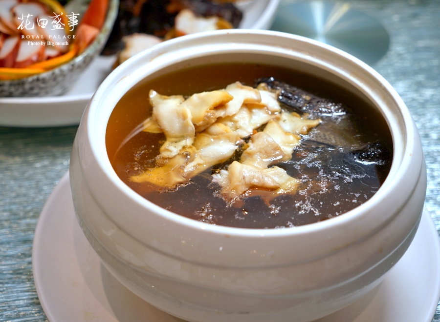 ▼原盅魚翅佛跳牆(位上),有佛跳牆已經夠讓人期待,沒想到上頭鋪得還是魚翅,給人一種低調又奢華的感覺!裡頭有芋頭、排骨、去骨雞腿、筍片、栗子、魚皮絲、蓮子、魚翅等食材,小小一碗卻是好料滿滿,吃起來香濃又鮮美,讓人意猶未盡!