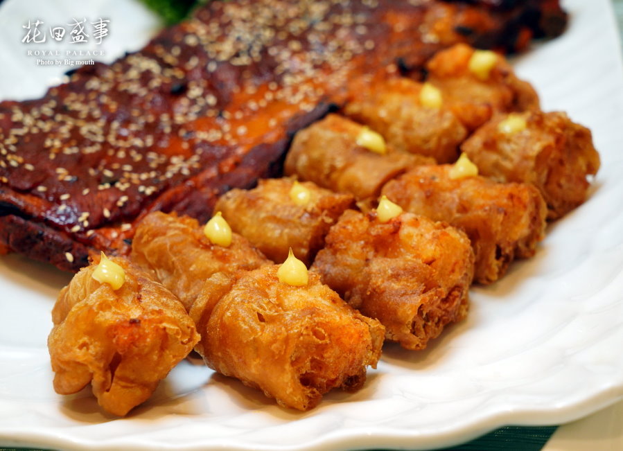 ▼海鮮卷,採用油條包裹蝦漿下去油炸而成,吃起來外酥內彈,鮮美又酥香,搭配上頭蜂蜜芥末醬點綴更是爽口不膩!