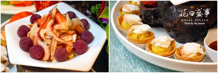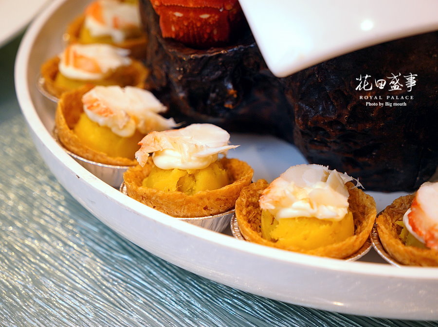 ▼冷盤內容物也很精采,包括龍蝦金雀盅、炙燒干貝、澎湖冰捲、烏魚子串、櫻桃鴨捲,高檔海鮮在這裡都能吃得到!
