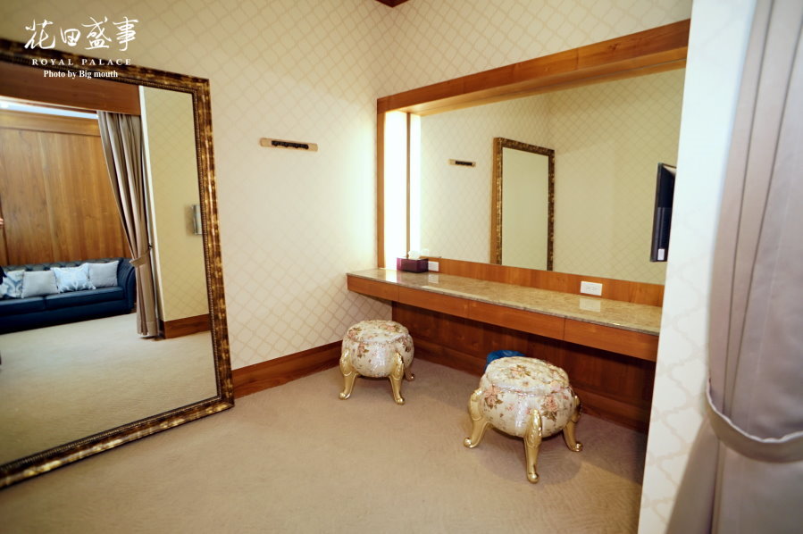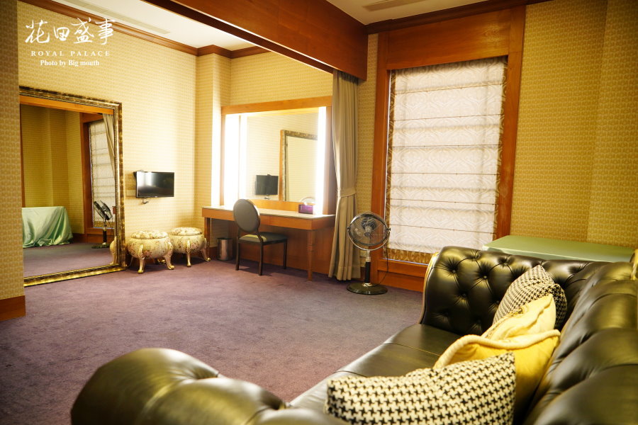 ▼新娘休息室空間也相當寬敞,走得是華麗浪漫的風格,還有附設鏡子與布簾,親友來訪時也能同時換裝!