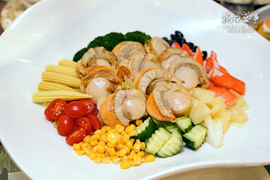 ▼帆貝和風綜蔬果,光是上頭碩大的帆立貝就夠讓人眼睛一亮,搭配小黃瓜、玉米粒、小番茄、玉米筍、青花椰菜、美生菜、海帶絲、蟹味棒等多種食材,再淋上特調醬料,清爽開胃又順口,吃多也不膩!
