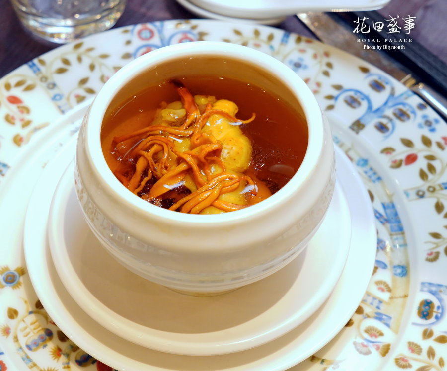 ▼蟲草人蔘燉雞盅(位上),採用蟲草、鮮人蔘、三節翅等,喝起來甘香味美,搭配蔘香與雞翅整個很滋補!