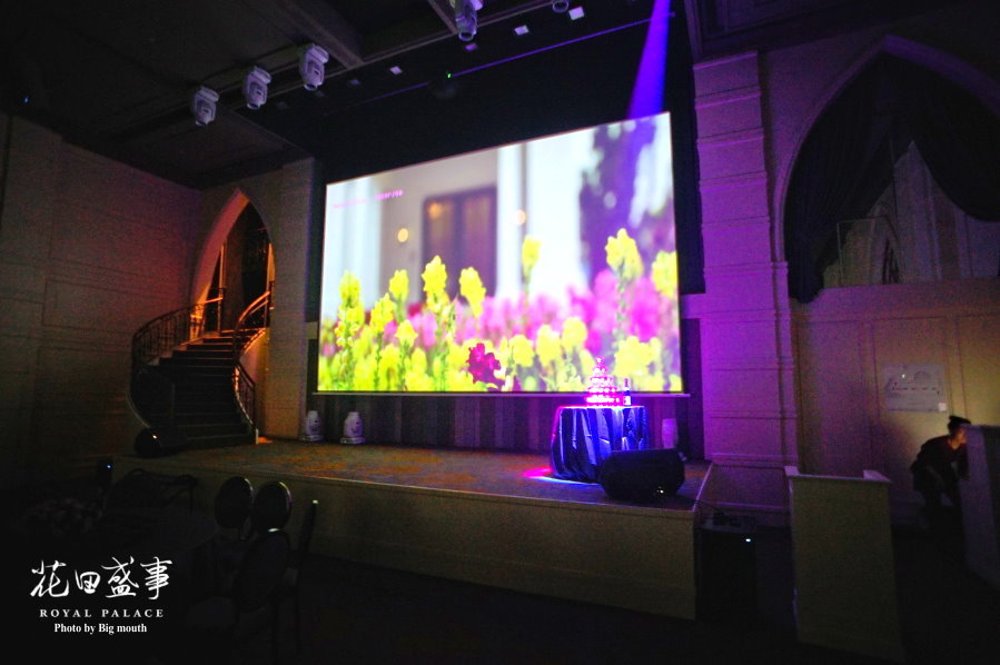 ▼前方還有提供舞台跟兩側螢幕,不管是證婚或是舉辦小型家宴,都是眾人注目的焦點!
