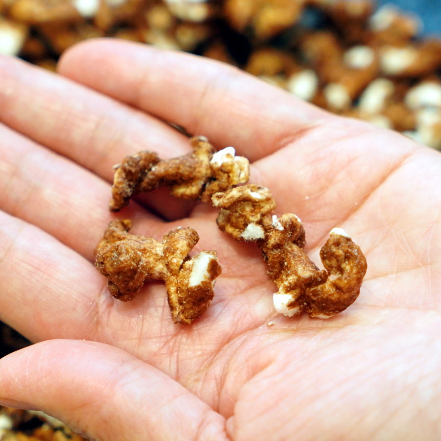 ▼手炒塩味焦糖可說是熱銷冠軍,不僅月銷十萬包,而且大人小孩都喜歡;經由慢火熬煮、慢工過篩、手工翻炒的製作程序,打造出焦香微苦不甜膩的口味,鹹甜交錯的味蕾超涮嘴,連我們家小口愛都跟我們搶著吃!經典原味更是獲得國際無添加認證,也是媽媽最放心給小朋友享用的一款零食;採用海藻糖調味,甜度約蔗糖的一半,吃起來帶有討喜的米香,恰到好處的微甜滋味,耐吃又不膩,很適合當作小朋友放學的點心!