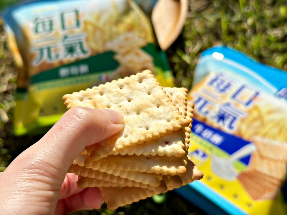 「每日元氣 PLUS」牛奶餅嚴選 100% 紐西蘭奶粉,添加真正牛乳及活力卵殼鈣,給你純淨香濃美味的餅乾。每日元氣 PLUS 酵母餅使用真正 100% 法國酵母及芝蔴增量 2 倍,味覺層次飽滿豐厚,更鹹香好吃,在享用天然酵母發酵而成的蘇打餅乾時,單吃也能嘗到淡雅的口感及芝麻香。在家樂福及全聯社均有販售,CP 值高。