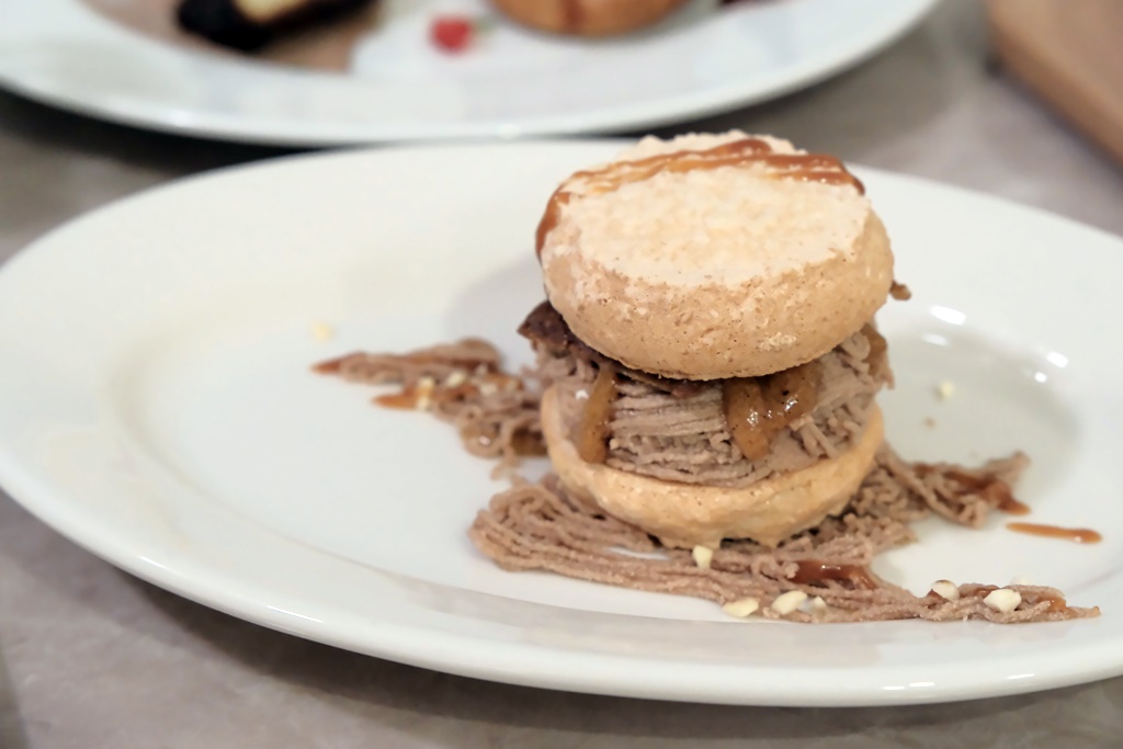 酥香的外皮搭配綿密的栗子泥和焦糖醬,一些堅果顆粒的點綴,成就一顆迷人的達克瓦茲!