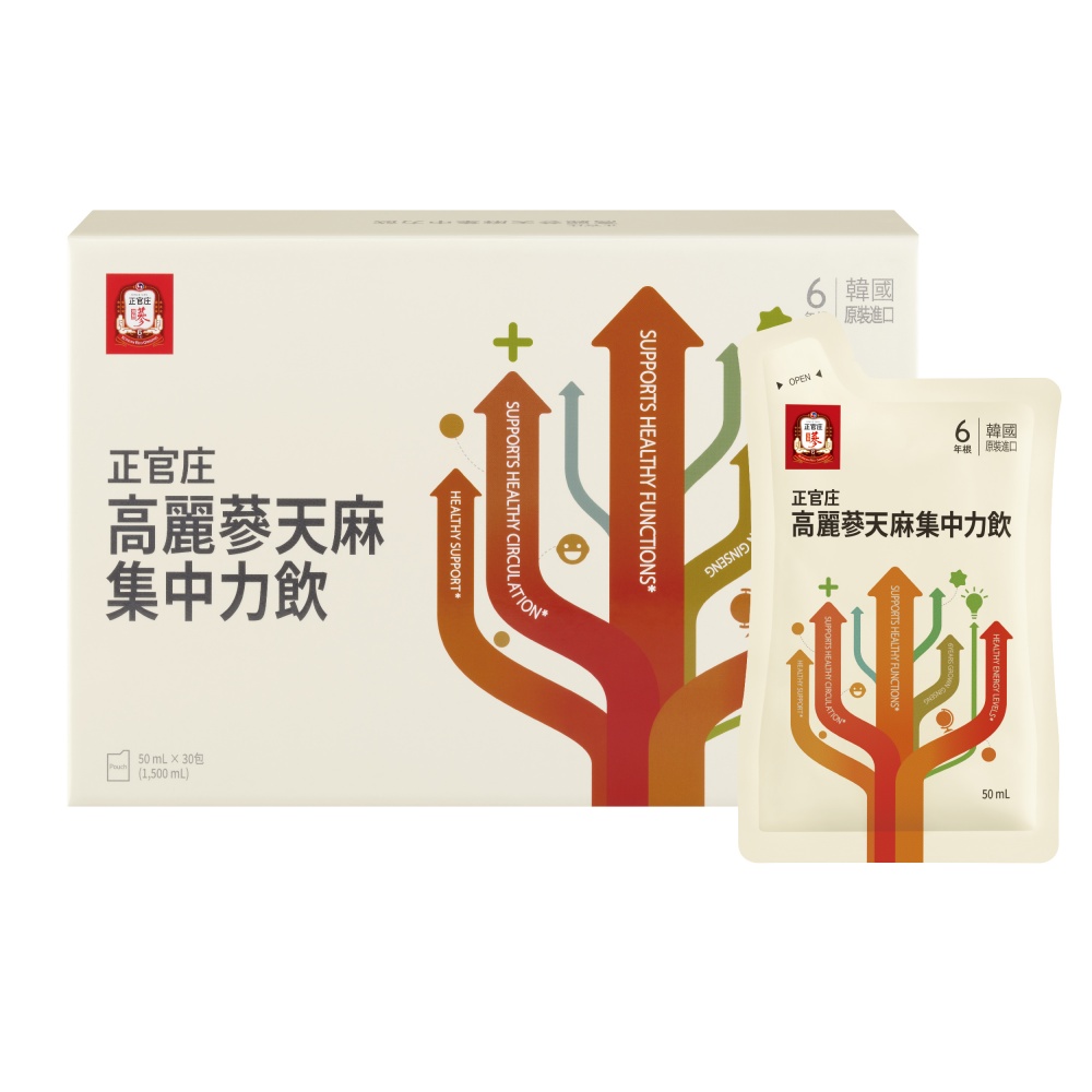 正官庄專為青少年打造「高麗蔘天麻集中力飲」,內含 6 年根高麗蔘幫助青少年提升保護力、增強體力,以及正官庄專利天麻複合萃取物,幫助學習加分,此外,應對 3C 充斥的時代,正官庄特別加入山桑、枸杞、野櫻莓成分,守護青少年晶亮力,全面應援考生各種需求!