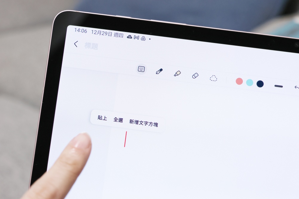 接著在 Galaxy Tab S8+ 上開啟 Samsung Notes,長按之後跳出「貼上」的選項,直接貼上剛剛的地址就可以了。