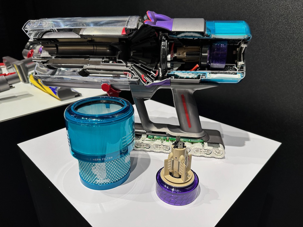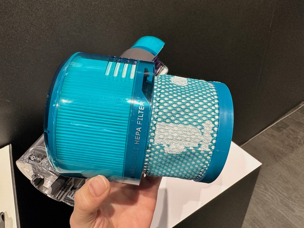 Gen5Detect 的濾網有著 1.9 米長再經過 145 次折疊,可鎖住 99.99% 小至 0.1 微米的顆粒物;14 個渦型氣旋讓灰塵顆粒物從氣流中高效分離,確保在過濾和塵氣分離過程中不會損失吸力,實現強勁但不妥協的最佳吸塵體驗。同時,各個零件的連接處都有進行全機密封處理,有效防止清潔過程中污染物洩露並過濾出潔淨的空氣,避免家庭清掃中可能的二次污染,升級後的全機密封 HEPA 過濾系統搭配高達 262AW 的強勁吸力。