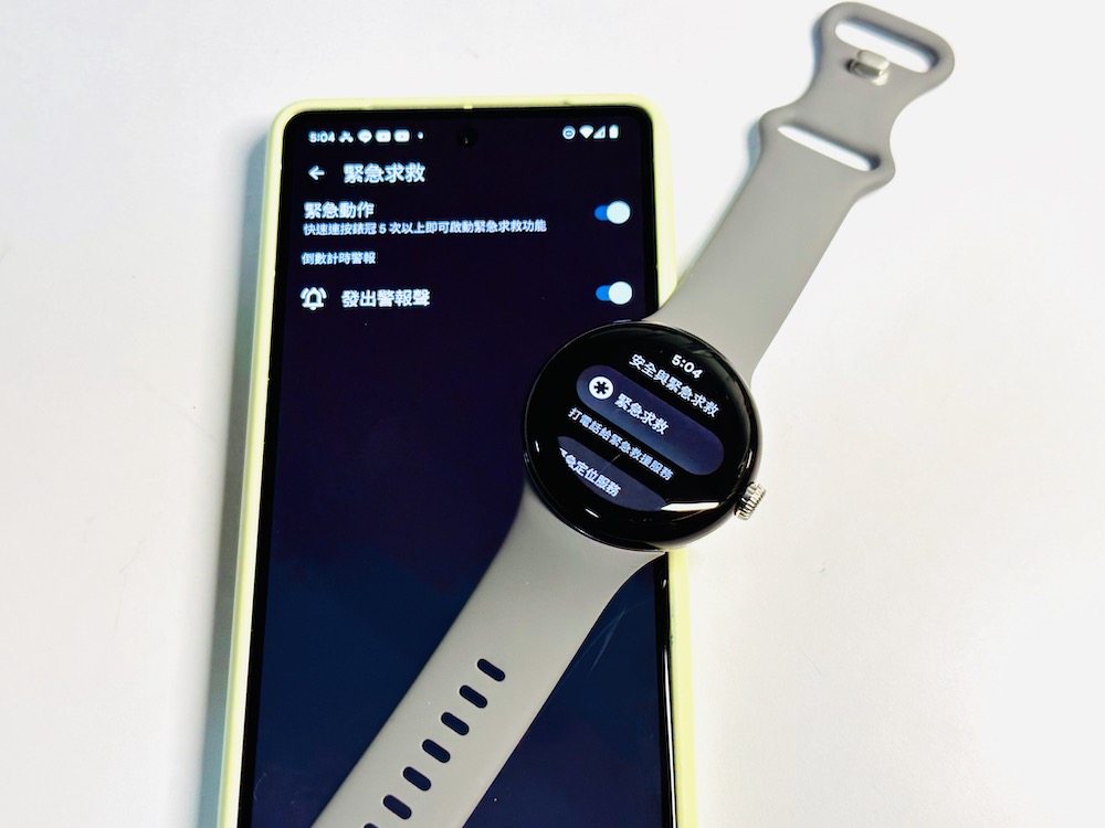 Pixel Watch 的跌倒偵測最高可達 32g 的跌落力道。這項功能可以在 Pixel Wath 的「設定」>>>「安全與緊急救援」>>> 「緊急求救」之中。或是從手機的 Pixel Watch app 中的「手錶偏好設定」>>>「安全與緊急救援」>>>「緊急求救」中進行設定。