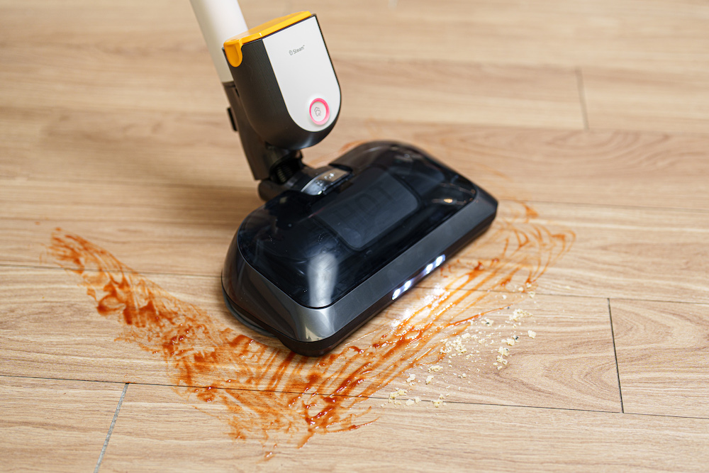 吸塵時總是要來回反覆吸才能夠清乾淨?A9 TS 蒸氣濕拖無線吸塵器大幅提升吸力至 220W,並以吸頭上獨特的氣流導流風道,產生氣流加強清潔性能,就連家中沙發、電視櫃底下等吸頭無法深入的地方,也能使用 A9 TS 蒸氣濕拖無線吸塵器搭載的第三代 LED 輕薄地板吸頭來一次解決。輕薄寬扁的地板吸頭增加 20% 寬度、減少近 15% 高度,能夠有效清潔低矮區域,並以吸頭前方的 LED 燈照明讓髒污無所遁形、一網打盡,真正達到深度清潔。