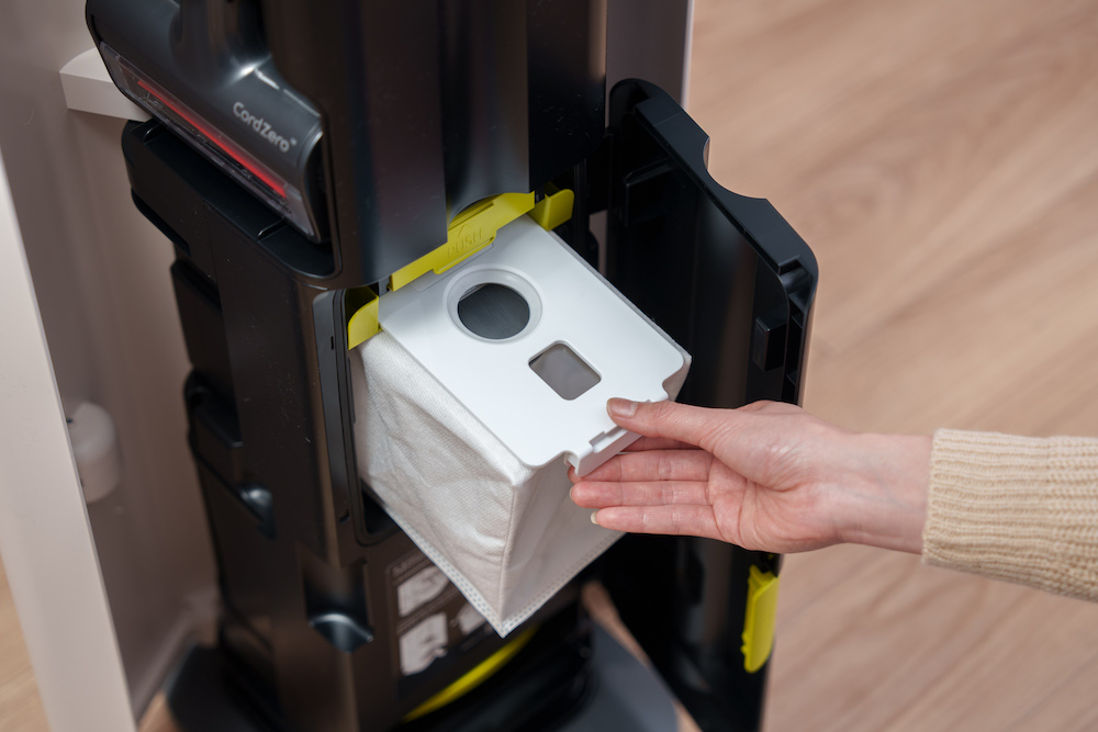 打掃時不僅不需要一直長按,還配有兩顆長效電池可以替換使用,總續航力長達 120 分鐘,讓清潔過程無須中斷。而 All-in-One Tower 2.0 智慧集塵收納充電座,可收納所有配件吸頭,要用時不用再怕找不到。