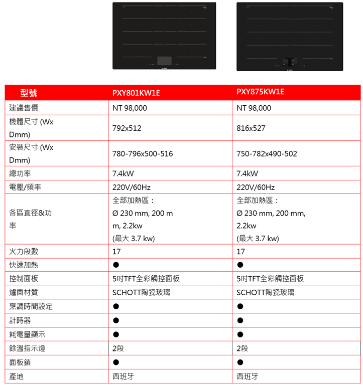 BOSCH Flex IH 智慧感應爐規格: