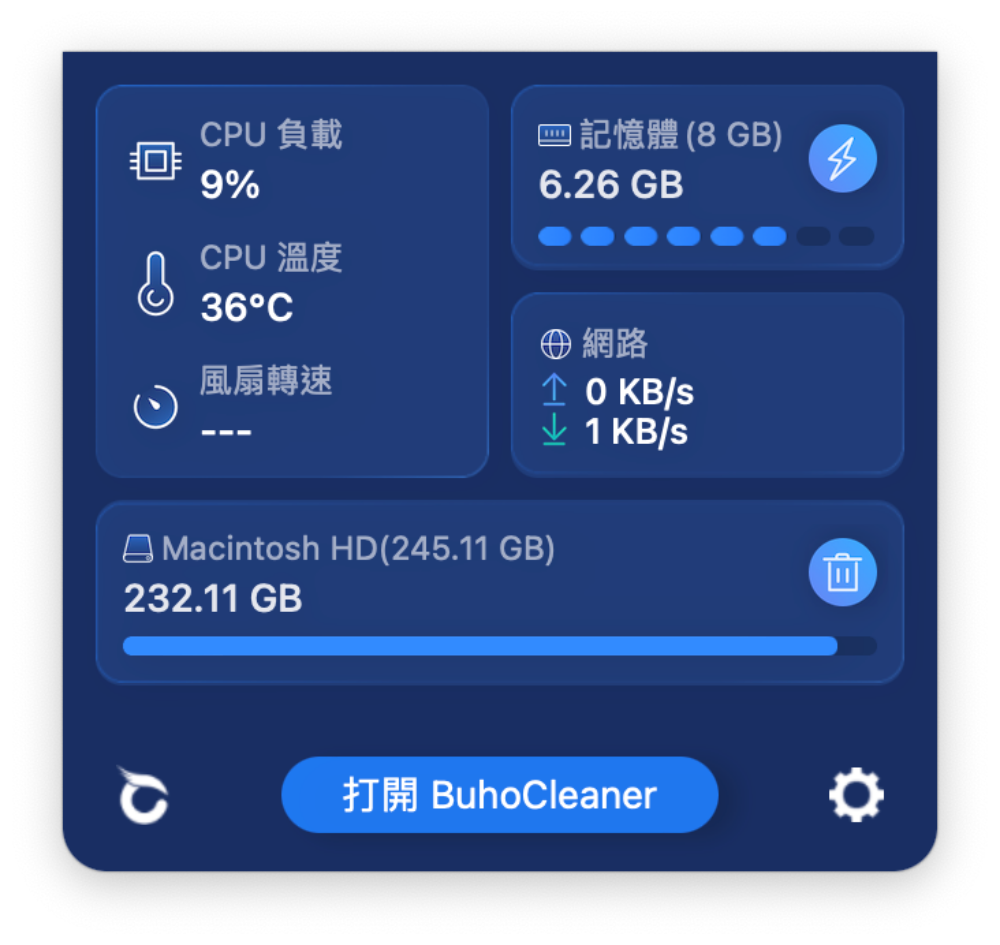 BuhoCleaner Menu 小工具,快速監控 Mac 日常