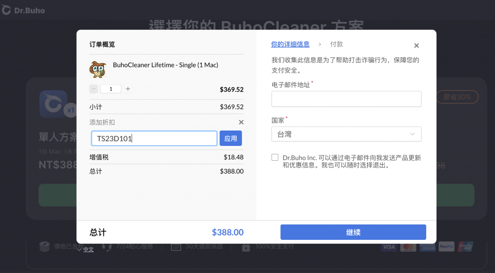 這麼好用的工具通常會選訂閱制來讓大家每年繳費,BuhoCleaner 卻反其道而行,居然推出「1 台 Mac 永久授權」的方案,雖然相當於是買斷但不會變成版本孤兒,方案是可以永久更新版本的,等於買一次就能用一輩子,現在搭配點子專屬的折扣碼「TS23DI01」,享 10% 額外折扣,若折扣碼顯示無效即為使用完畢,有需要的話真的可以把握。