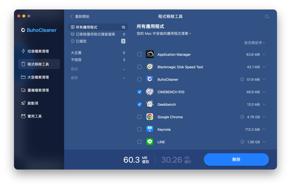 有時候安裝完應用程式之後,會忘記刪除安裝檔,或是有些應用程式其實只是階段性使用,但使用完忘了刪除就成了儲存空間的地縛靈佔據空間,這時候就可以應用 BuhoCleaner 的程式移除工具來刪除不要的應用程式。