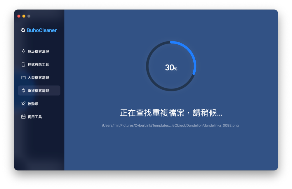 接著等待 BuhoCleaner 查找重複的檔案,查找速度依照指定的資料夾大小而定。