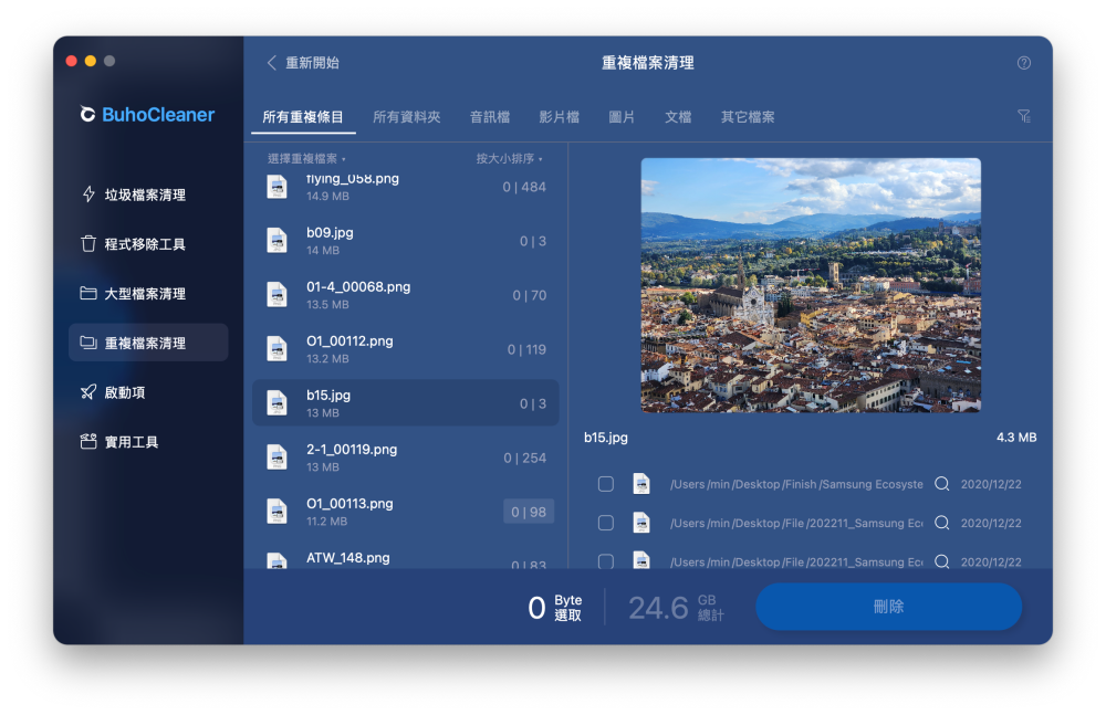 雖說蘋果這幾年為了讓不擅長管理檔案的使用者設計了不少檔案分類管理工具,但對於清除重複檔案來說,目前還沒有特別有效的做法,因此我們可以靠 BuhoCleaner 幫我們找出重複存在不同位置,但內容相同的檔案。