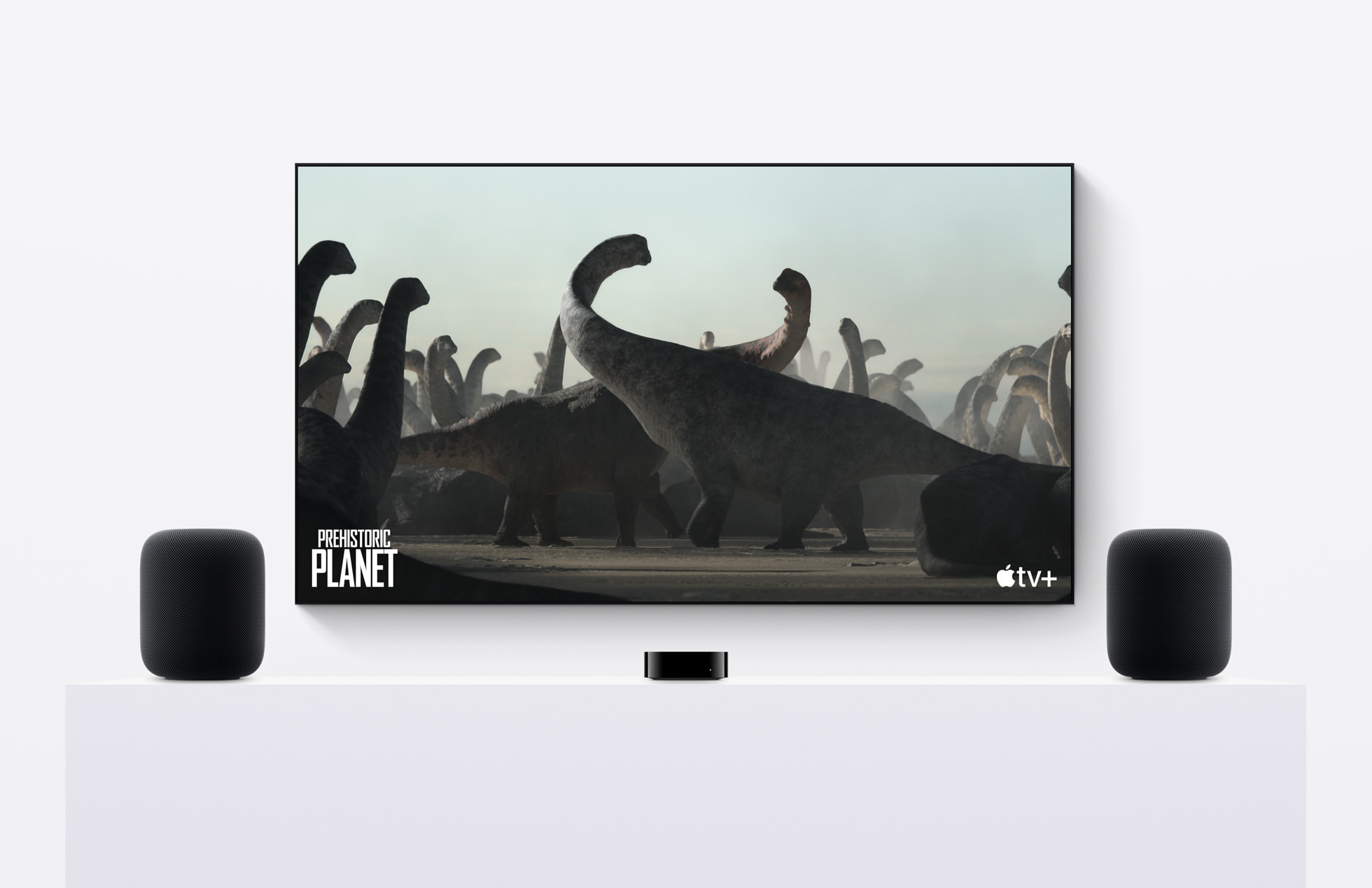 配對 HomePod 與 Apple TV 4K 即可打造強大的家庭劇院體驗。Apple TV 4K 支援 eARC (增強音訊回傳通道)5,讓使用者可以將 HomePod 設定為所有連線至電視的裝置音訊系統。此外,透過 HomePod 上的 Siri,使用者不必動手即可遙控 Apple TV 播放的內容。