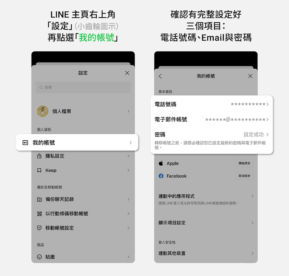 - 路徑: LINE 主頁右上角「設定」(小齒輪圖示)> 我的帳號