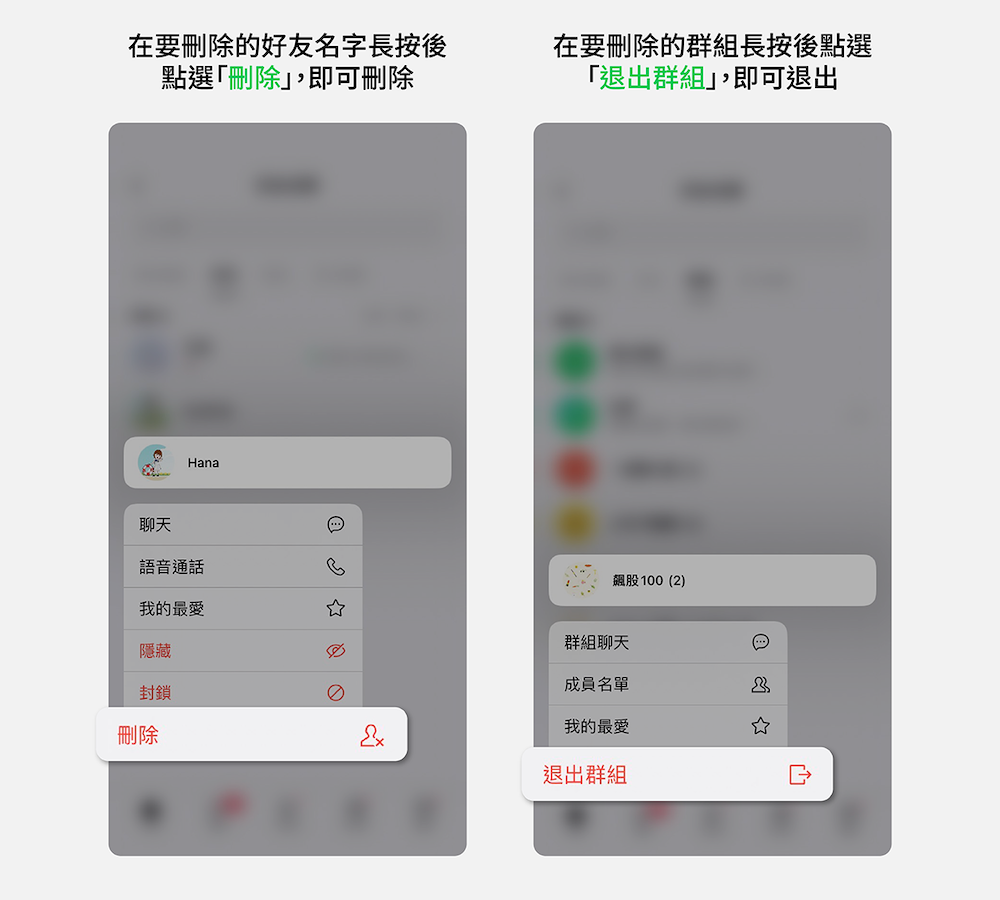 - 刪除好友路徑:長按想要刪除的好友 > 選擇「刪除」
