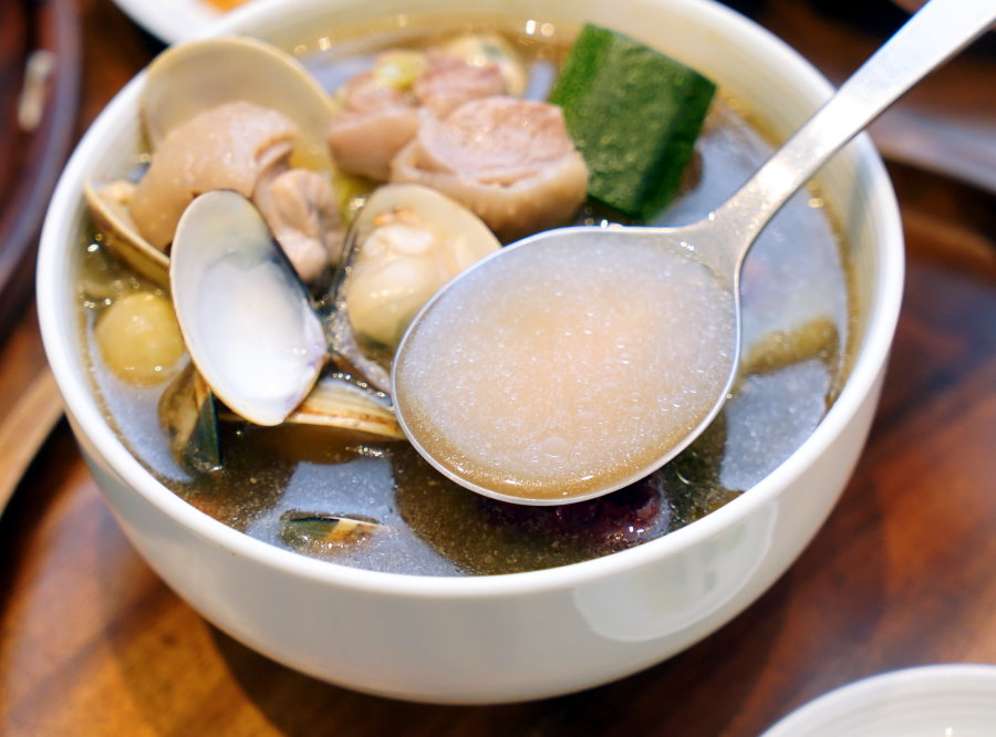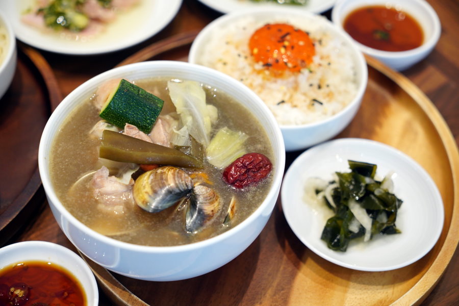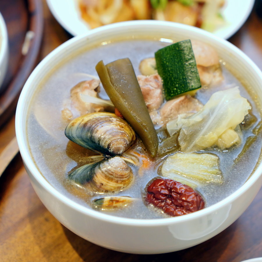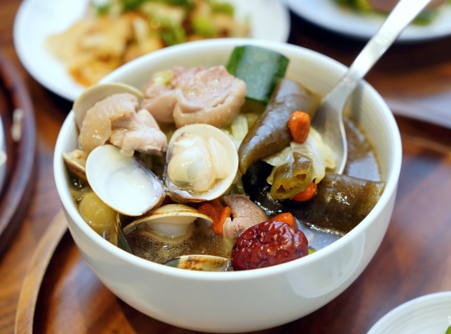 ▼裡頭的配料多到快滿出來,蛤蜊煮得恰到好處,豐潤又提鮮;土雞腿肉熬煮得很剛好,吃起來柔軟又帶有彈性,去骨處理讓長輩、小孩都方便入口~剝皮辣椒帶點脆度,裡頭的高麗菜、櫛瓜也保有應有的口感,該軟的軟、該脆的脆,吃得到食材的天然原味!