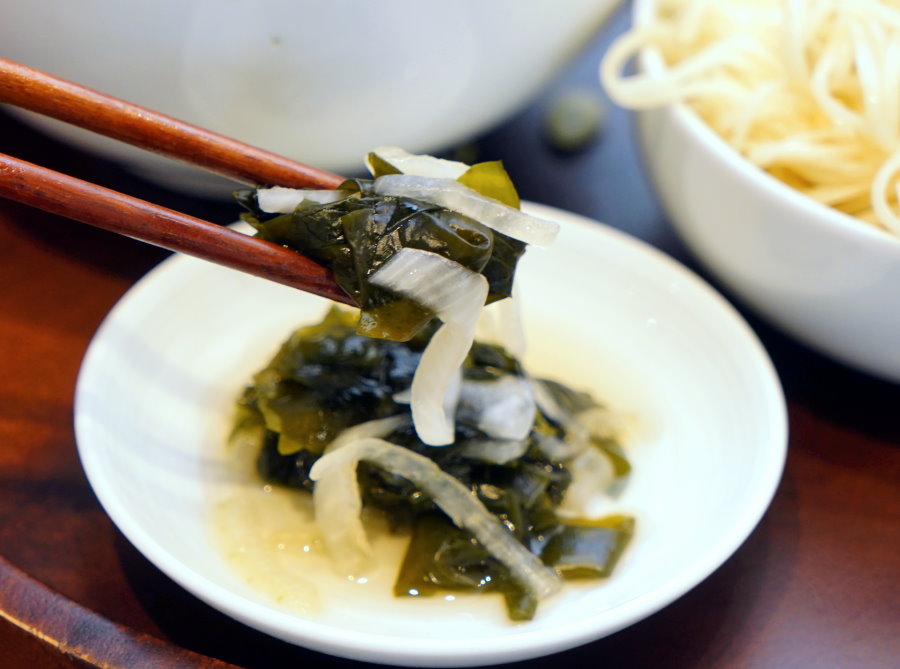 ▼當天的小菜是自家醃漬海帶芽,吃起來酸溜甘甜,帶點微微柚子香氣,整個很開胃啊~吃不夠還可以免費續加唷!