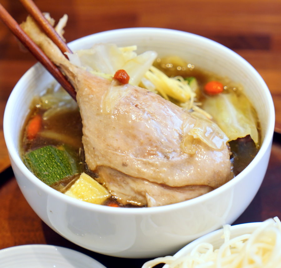 ▼當歸鴨棒棒,使用在地老中藥行當歸配方搭配宜蘭豪野櫻桃鴨棒腿,加上高麗菜、櫛瓜等配料,光看就讓人想咬上一口!