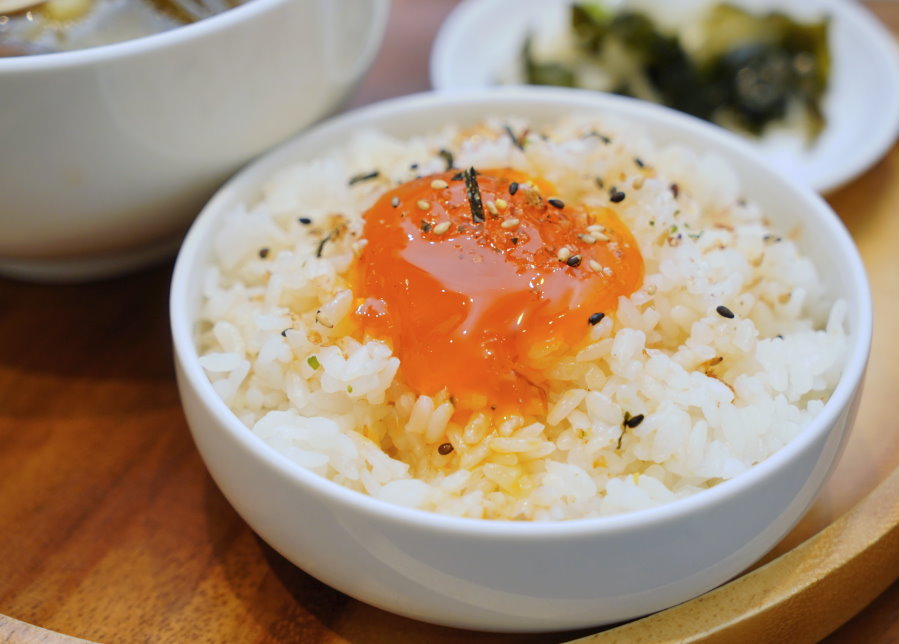 ▼輕輕一戳,半熟蛋黃緩慢流瀉而下,讓粒粒分明的白米飯更多了股滑順蛋香,加上味醂、醬油、香鬆等組合,整個很有日式的感覺!