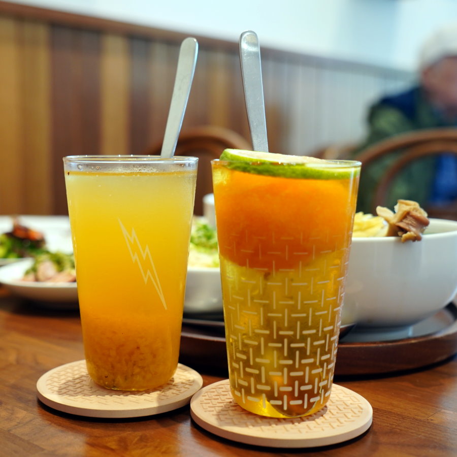 ▼旺來鳳茶,以四季青茶為底,搭配自家熬煮鳳梨醬,喝起來酸甜甘香,有種古早味的感覺;芒芒青夏,採用芒果雪酪加上四季青茶,芒果雪酪可以單吃也可以讓它慢慢融入青茶中,既喝得到果香也有淡雅的茶香,兩款都很清香爽口!
