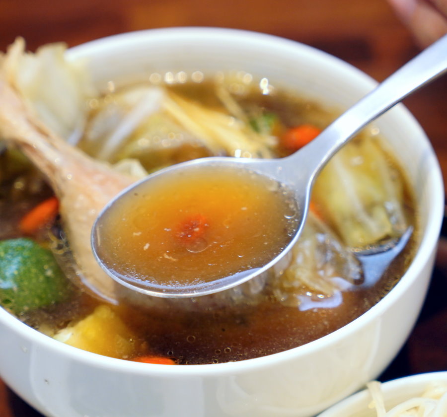 ▼帶點微辣的湯頭溫醇、酸香又甘甜,喝起來整個胃都暖了~雖說是店裡頭偏濃重的口味但相較於市面上的剝皮辣椒雞湯來說還是滿溫潤的!