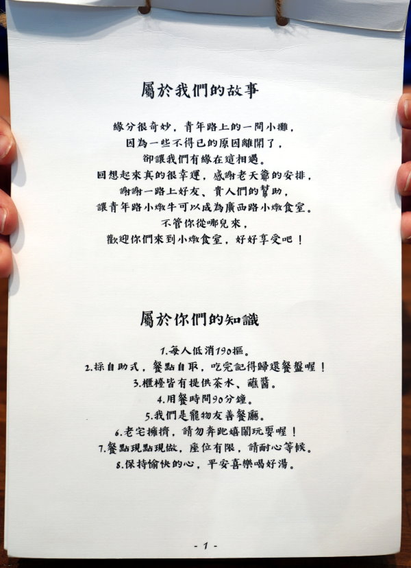 ▼門口掛有小燉食堂的招牌及菜單,等待的空檔也可以先參考一下!