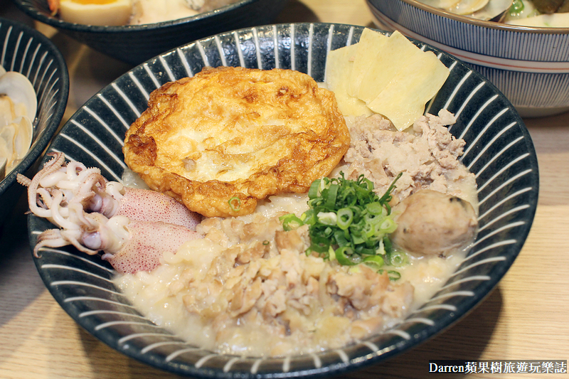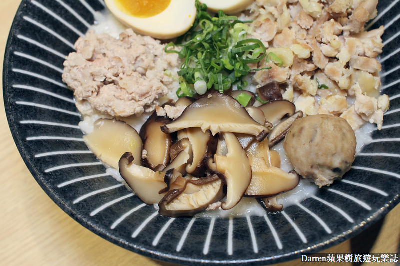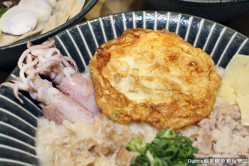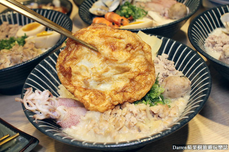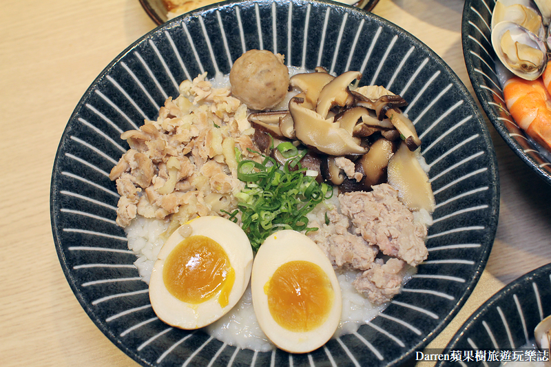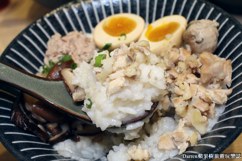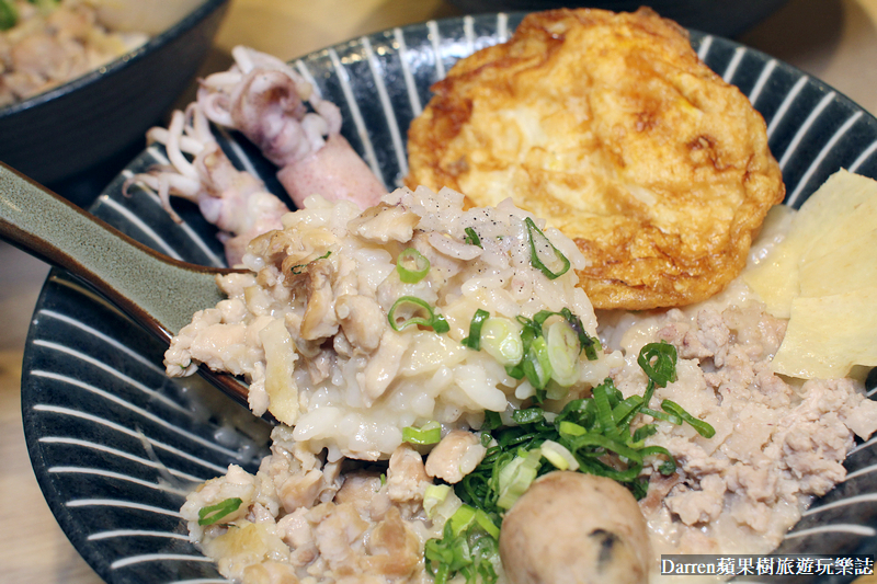 粥大福的麻油粥品也很特別,以往麻油粥都是在家自己熬煮居多,他們家連麻油粥品也有賣,這碗麻油燉雞粥,麻油使用正宗北港麻油,讓粥品帶著濃郁麻油香氣,吃起來不會膩口,再搭配上酥香可口的麻油炸蛋非常加分