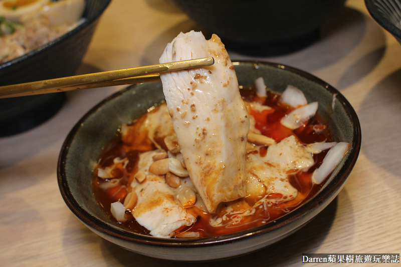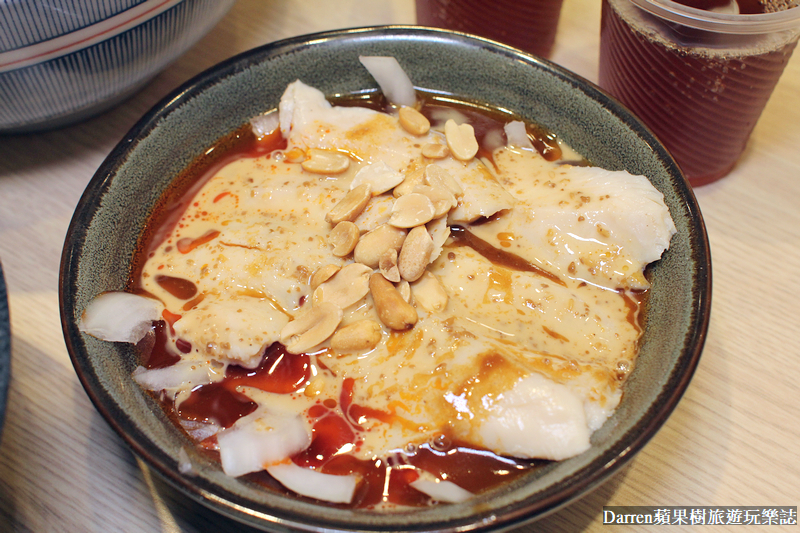 沒想到粥品店也有賣四川口水雞,這道是經典的四川菜,端上桌可以看到雞肉片肉,然後加入辣椒紅油當基底的醬料,其實吃起來我覺得辣度還好,主要是微辣中又帶著香氣,雞肉則是非常嫩口