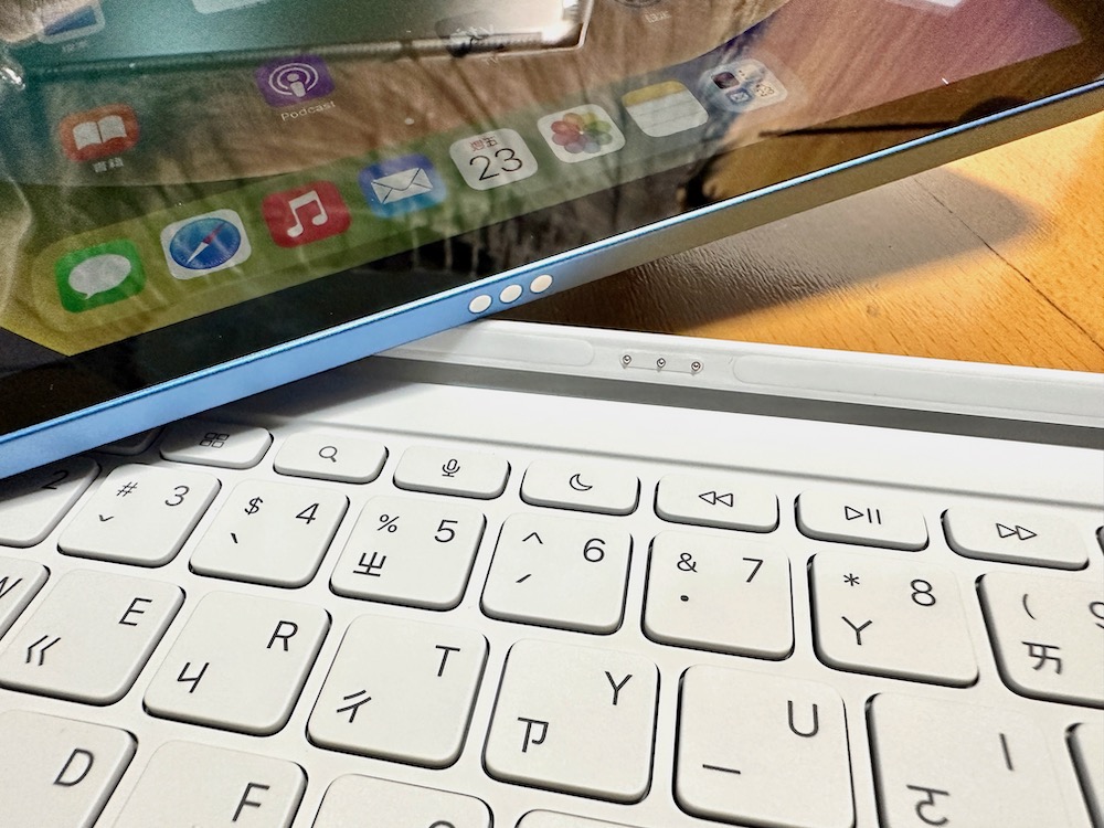 ▼ 位於 iPad 一側還有聰穎接點,能將電源和資料傳送到全新的巧控鍵盤雙面夾。(這個超好用的巧控鍵盤雙面夾我們等等會另外介紹。)