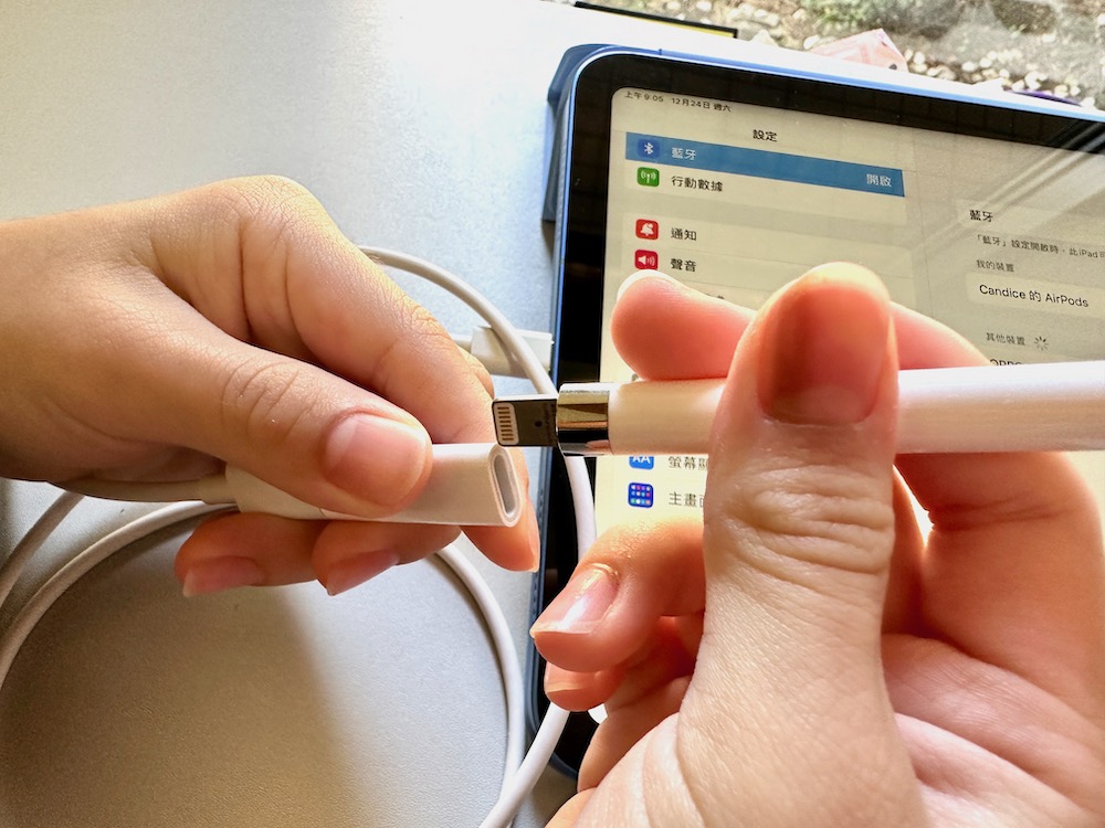 不過對此 Apple 也是相當用心的為 Apple Pencil 提供了 Lightning 轉接器、替換筆尖與 USB-C 對 Apple Pencil 轉接器,只要在兩端分別接上 iPad 與 Apple Pencil 就能為 Apple Pencil 充電以及配對。