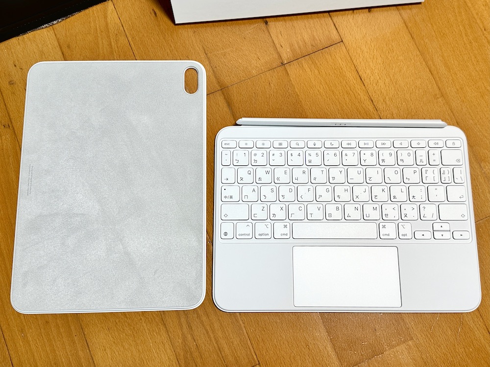 這內建觸控式軌跡板的鍵盤雙面夾真的是平板工作者的好幫手!本身是用兩件式設計,兩面都能強力吸附在 iPad 10 上,不需要另外充電,也不用藍牙配對就能直接使用,並且給予 iPad 10 最溫暖的保護。