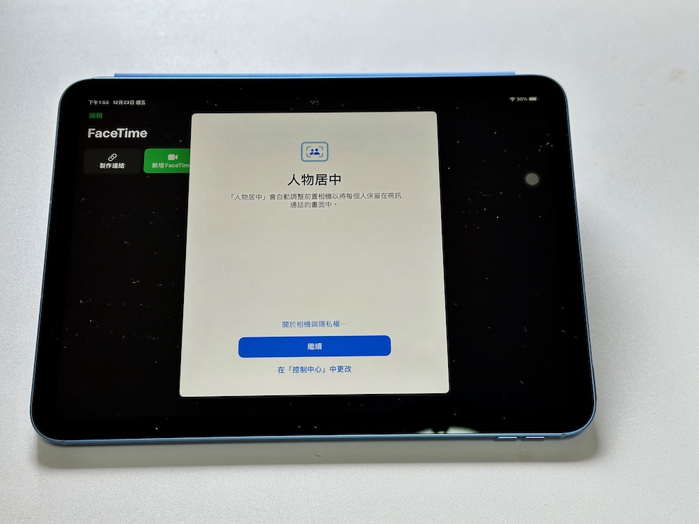 ▼ 相機方面,iPad 10 把前置鏡頭轉到長邊橫向位置,超廣角 1200 萬像素鏡頭,還支援「人物居中」功能,所以如果在跟遠處親友 FaceTime 通話或錄製影片的時候,就能讓自己在移動時還保持在畫面的中間。相機也支援以 60fps 拍攝高達 1080p 的智慧型 HDR 3 影片,並改良了低光源拍攝效能。
