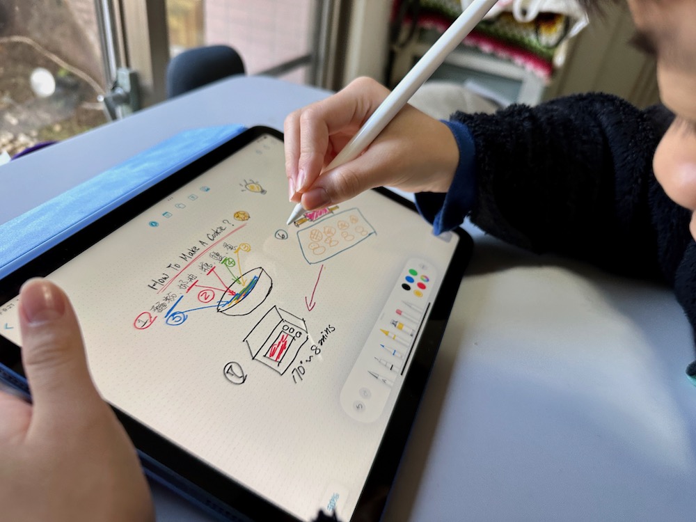 剛剛已經提過 iPad 10 支援第一代 Apple Pencil。我們只要將平板跟 Apple Pencil 配對後,就能在平板上開始筆記、畫畫。