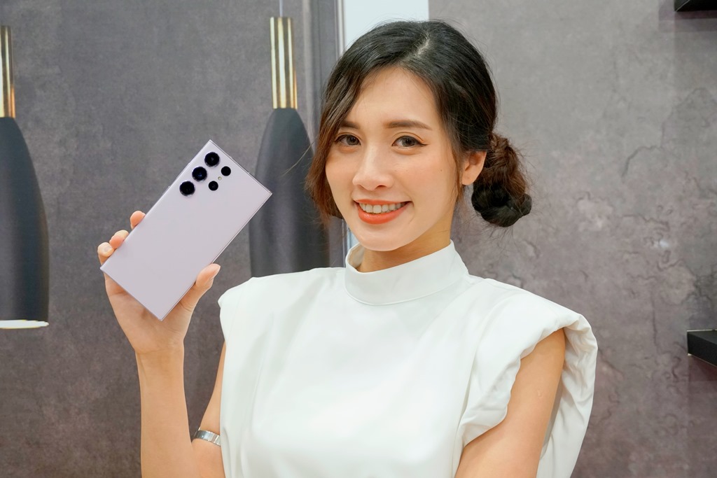 外觀部分,這次 S23 系列都有著紫、綠、白、黑四色,在 S23 Ultra 部分可以看到鏡頭加大了一些,另外前面提到的曲面螢幕曲率降低,也讓邊框更為圓潤一些,握感與 S22 Ultra 不太相同。