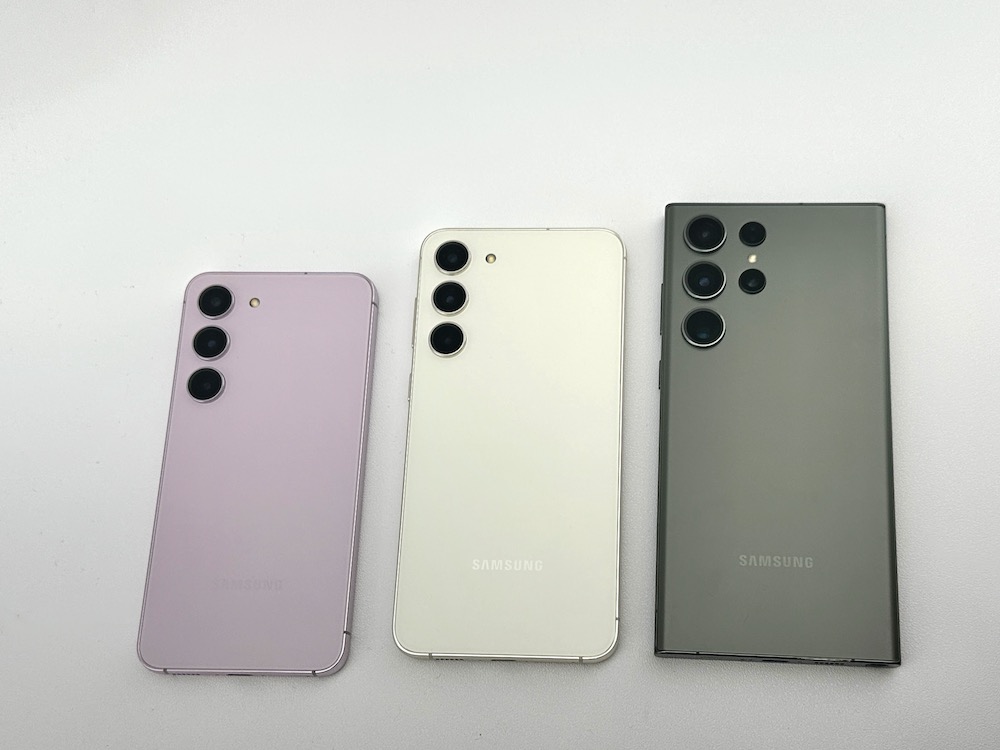 Galaxy S23 與 S23+ 在外觀尺寸大小、重量等都與前一代差不多,拿掉了相機附近的重量,卻也補上電池提升 200mAh 的重量。而 128GB 儲存容量選擇更僅保留在 S23 一款機型上,但也為 S23 增加了 512GB 的選擇。S23 雖然還是沒有支援 UWB 超寬頻技術但也在自拍上從 1,000 萬畫素提升到 1,200 萬畫素以及支援 WiFi 6E。