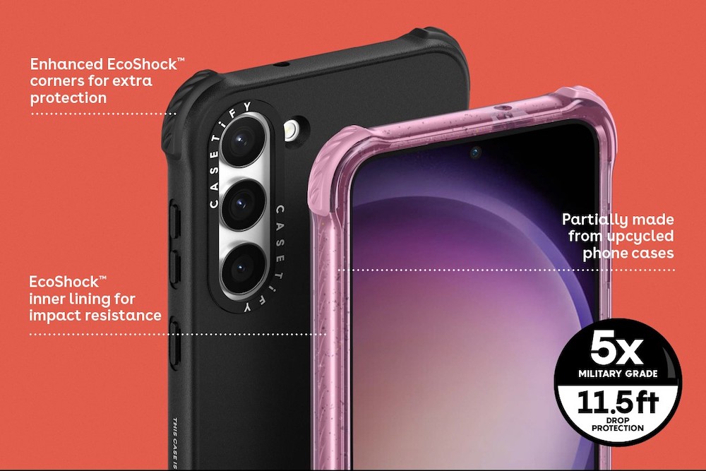 此外,CASETiFY 秉持的環境永續的理念,為三星 Galaxy S23 系列強悍防摔與特強防摔手機殼注入永續的精神,除了專利 EcoShock 防摔物料是由 40% 的植物性原料製成之外,手機殼更是採用由「RECASETiFY 回收計劃」收集而來的舊手機殼再造而成。CASETiFY 透過 Re/CASETiFY 創新技術,將回收的舊手機殼重新再利用於新產品的原料中,賦予舊手機殼第二生命,使 CASETiFY 三星 Galaxy S23 系列手機殼成為市場上最環保的產品之一。