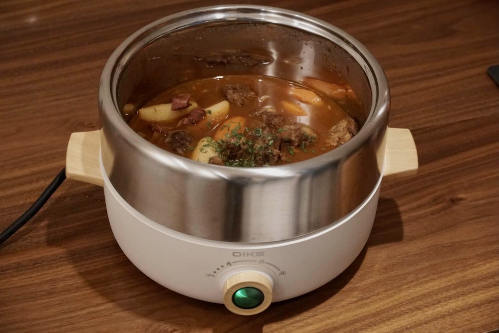 主廚陳貞元 Genie 也表示不鏽鋼鍋的優點在不容易沾黏,尤其是 DIKE 的產品,相較於市面產品使用上更有不沾的優勢。不過如果想要煎烤較會有油煙的料理時,相較於明火廚房有抽油煙機,電煮鍋也是可能起煙,因此建議可以通風處使用好再帶到客廳。