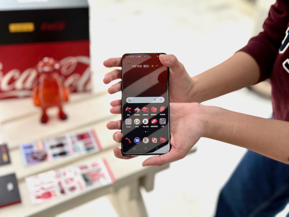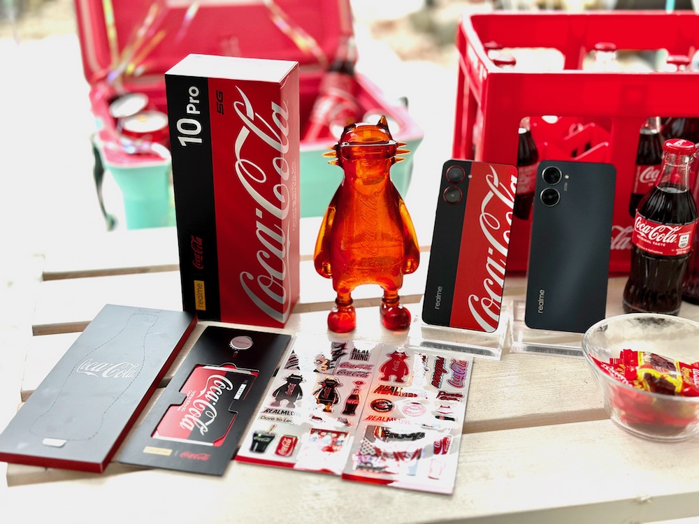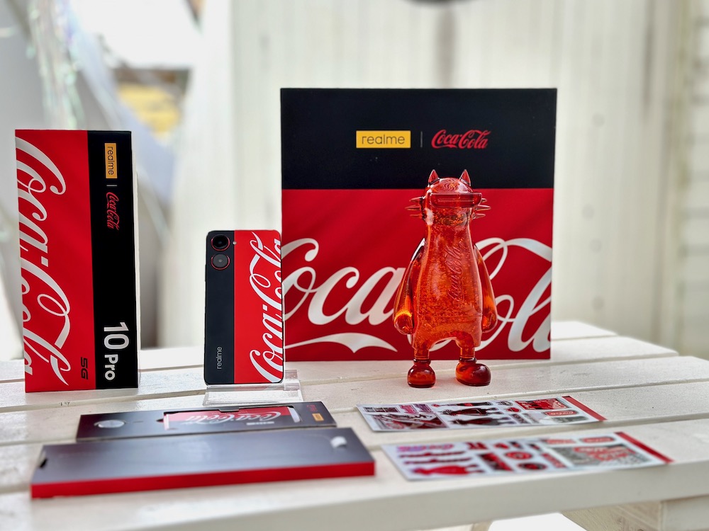 此外,realme 還推出 Coca-Cola Edition 限定禮盒,內含手機與一隻 realmeow Coca-Cola 限定公仔,可口可樂的顏色與不規則的氣泡,仿佛真正的可樂一般。