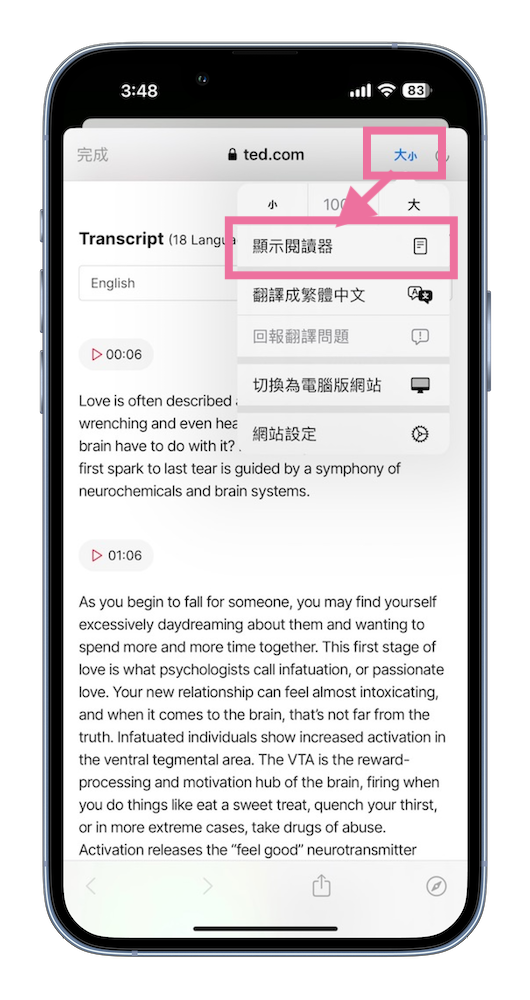 Podcast 中各式各樣的節目吸引了不少親子、通勤、學生等族群的喜愛,不過除了用耳朵收聽精彩的 Podcast 內容外,我們也能透過 Apple 的 Podcast 把喜歡的節目,或是像是 TED Talks Daily 等外語精彩節目內容變成文字稿,讓自己不論是想要練習閱讀或是英聽能力都是個不錯的選擇!